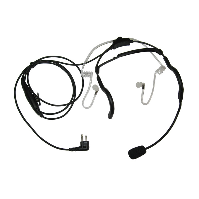 Light weight headset with in-line PTT and double acoustic tube for two way radio.