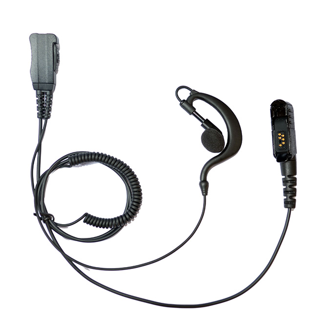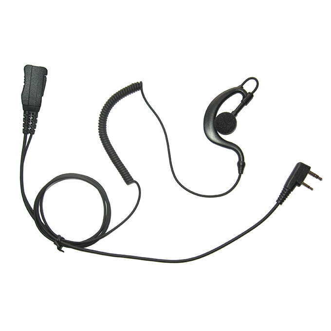 G shape Ear hook earpiece with PTT & microphone for walkie talkie / two way radio. 1) G shape ear hook 2) Clear sound without distortion 3) Sensitive PTT and Mic 4) PU and reinforced Kevlar cable 5) Flexible G shape ear hook 6) Split-Wire Design