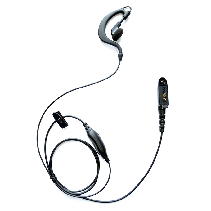 One wire G ring ear hook earpiece with Mic and in-line PTT for two-way radio 1) Ear hook earpiece with in-line PTT and Mic for Walkie-Talkie 2) PU and reinforced Kevlar cable 3) Different connector is available