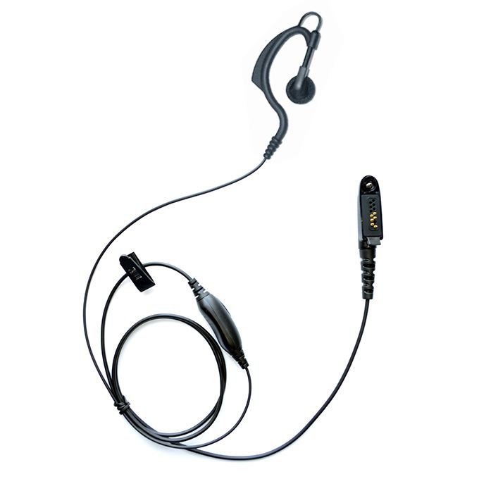 One wire G ring ear hook earpiece with Mic and in-line PTT for two-way radio. One wire G shape ear hook earphone. 1) Ear hook earpiece with in-line PTT and Mic for Walkie-Talkie 2) PU and reinforced Kevlar cable 3) Different connector is available