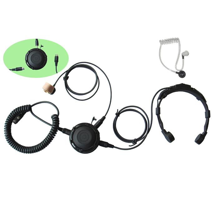 Tactical throat microphone with audio coil tube and eartip: