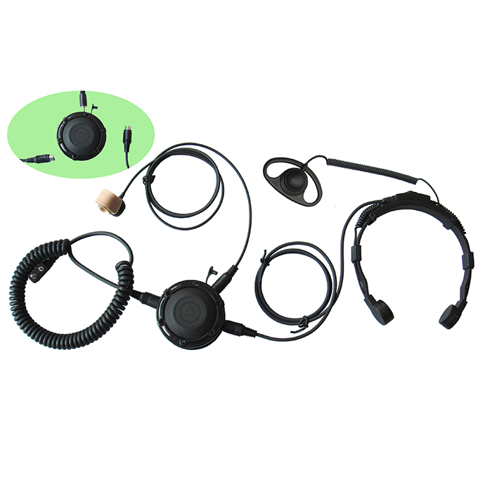 Tactical throat microphone with D shape ear hanger Microphone picks up even a whisper