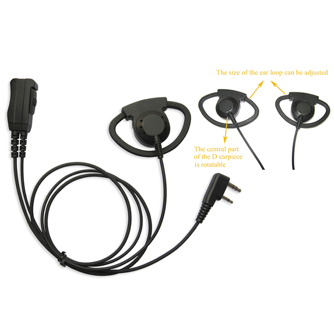 Adjustable D shape ear hanger earpiece with PTT/MIC for two way radio.